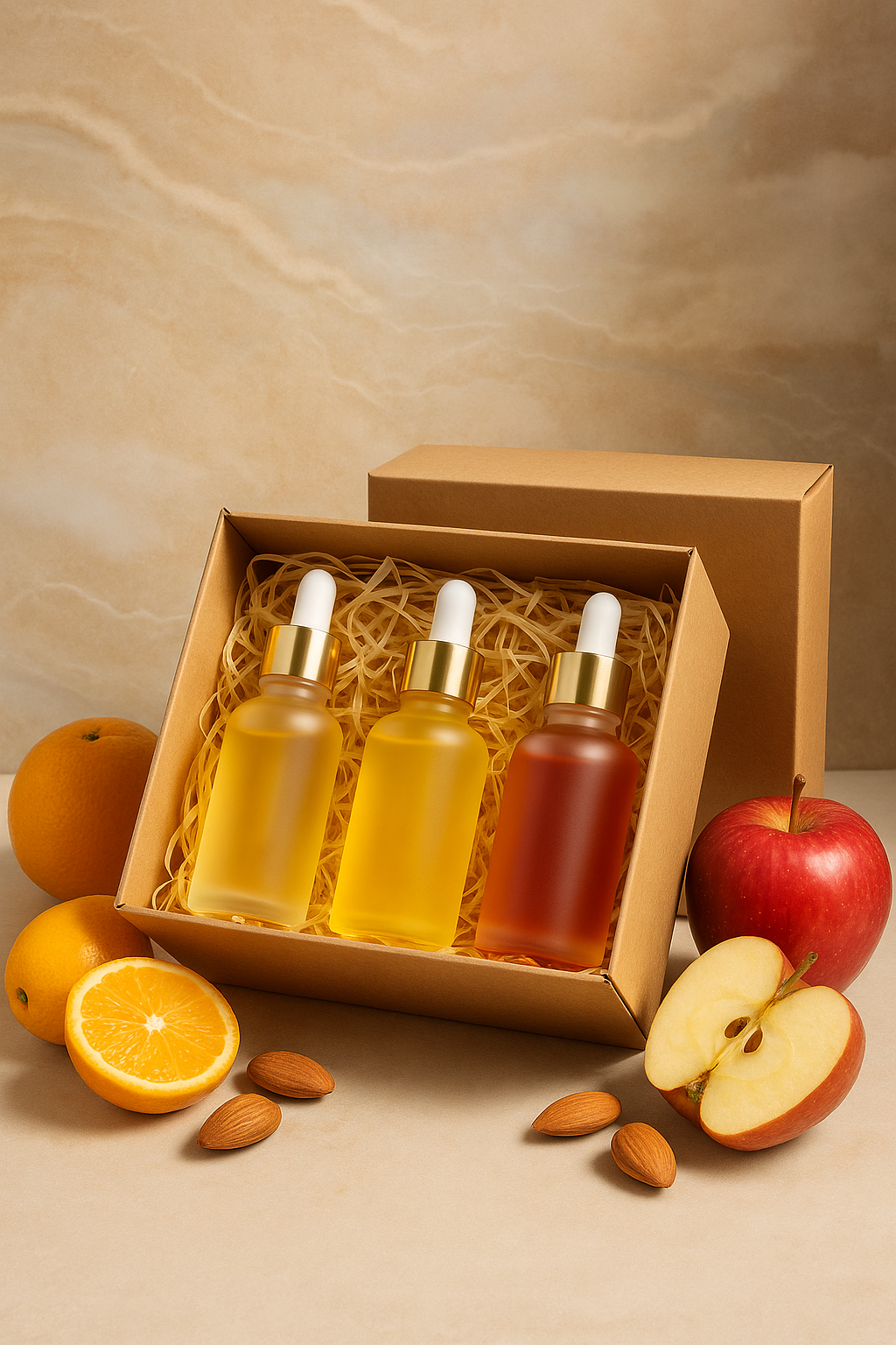 🌸✨ Kuiva Naha Hellus-Trio — Apelsiniseemneõli, Õunaseemneõli ja Mõruda Mandli Õli (3 × 30 ml)